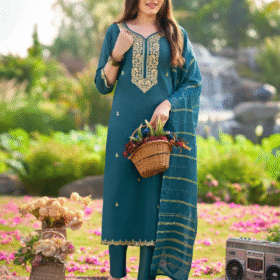 Beautiful Simmer Roman Designer Straight Style Kurti Set
