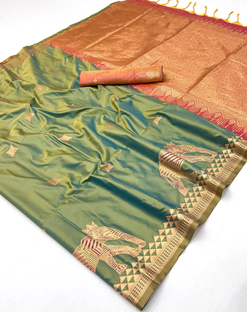 - Saree Fabric : Pure Silk Handloom Weaving Contrast PalluBlouse: Pure Silk Handloom Weaving