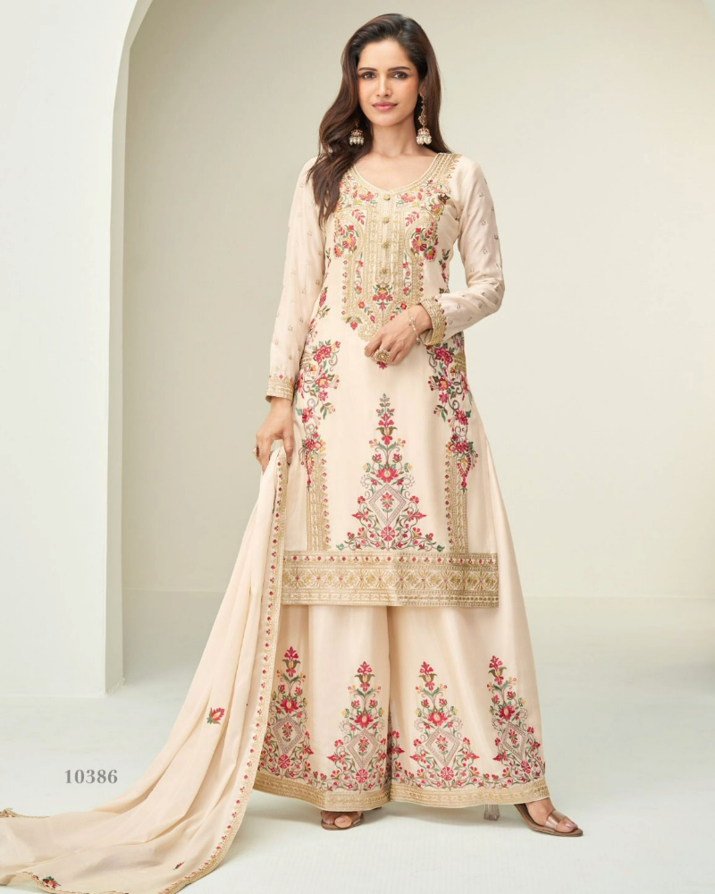 Indian Festival Special Premium Chinon Silk Designer Palazzo Style Suit
