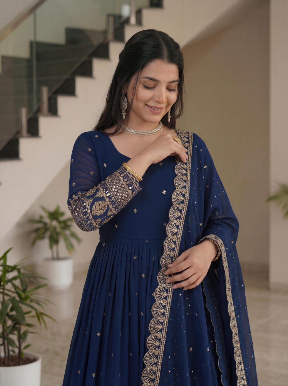 STYLE: – Beautiful Fully Custom Made Indian Traditional Women Anarkali Suit comes with Dupatta, & Top. Very Fine & Finished Dress Fully Crafted with Embroidery & Other fancy work.