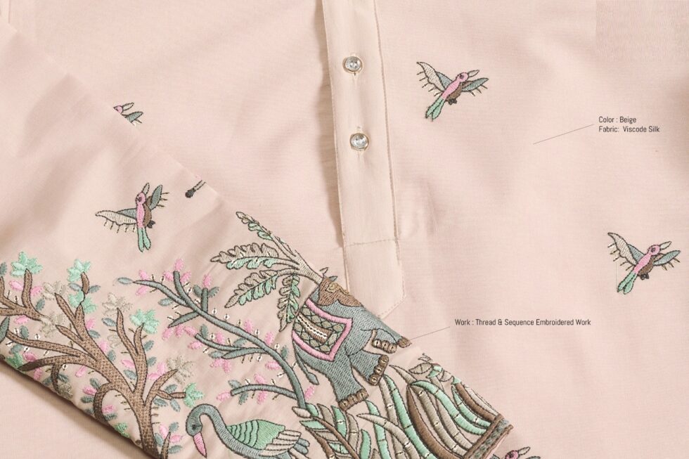 Viscose Silk Designer Embroidered Men’s Wear Kurta Pajama