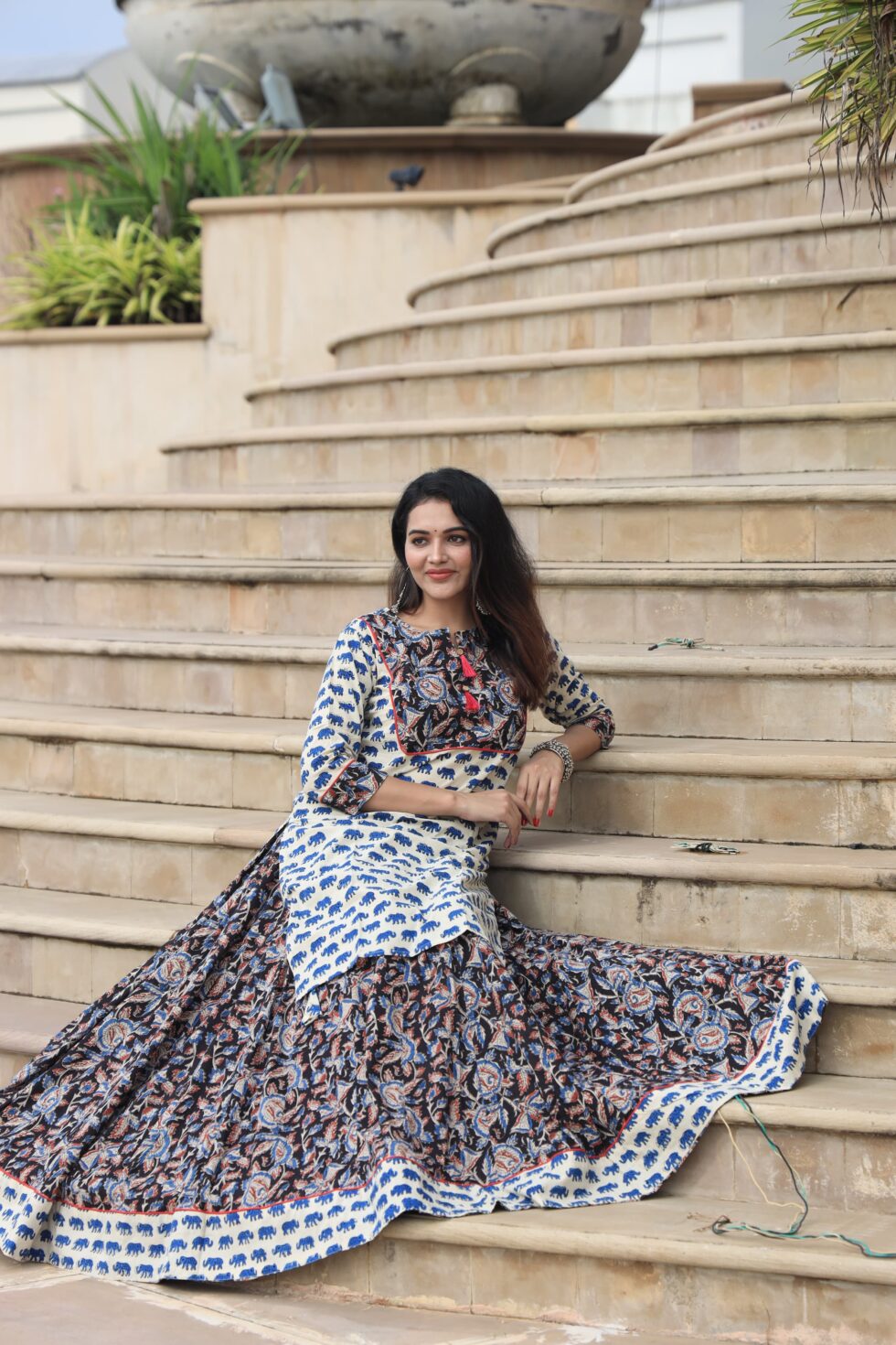 Hand block Printed Ethnic Wear Pure Cotton Lehenga Style Suit