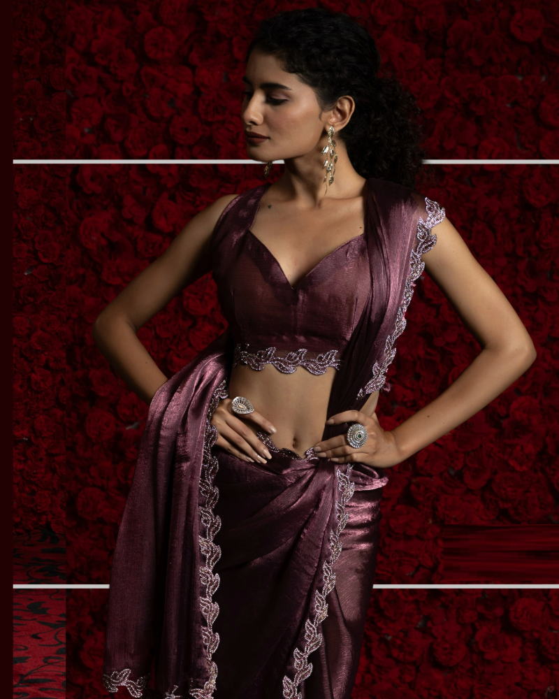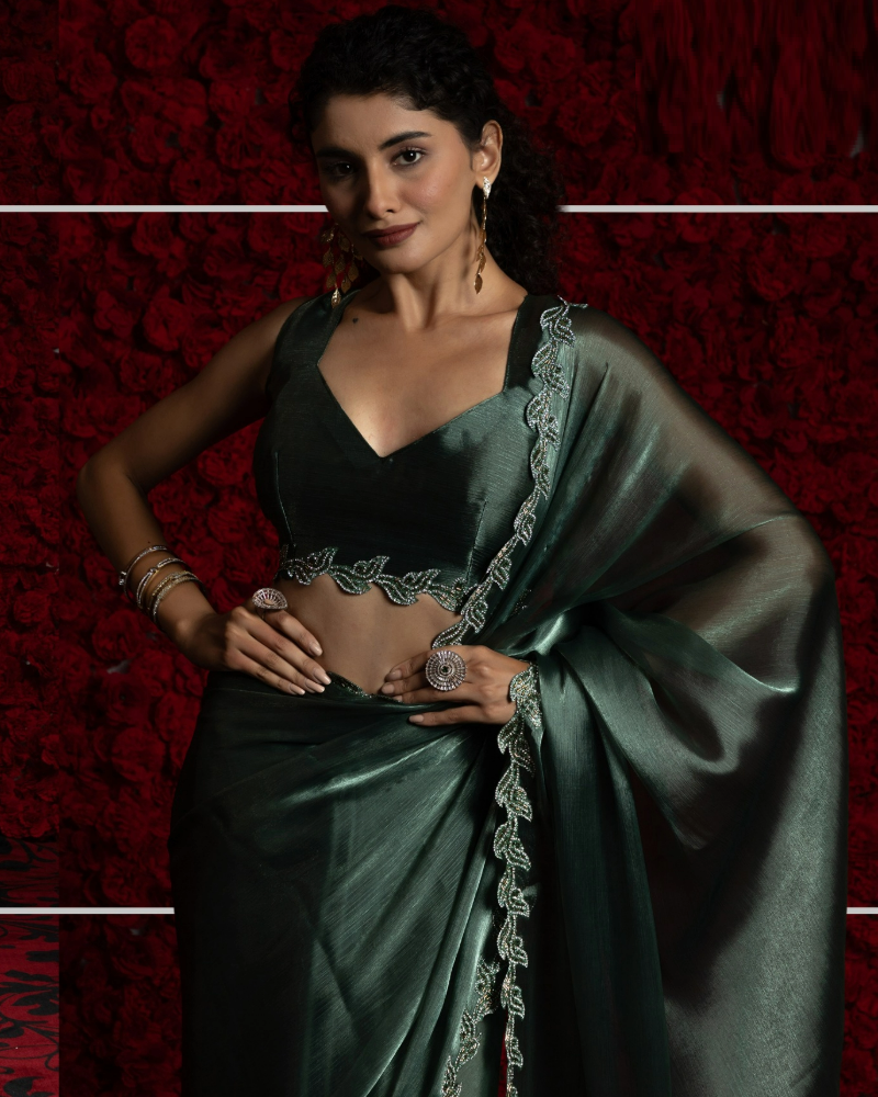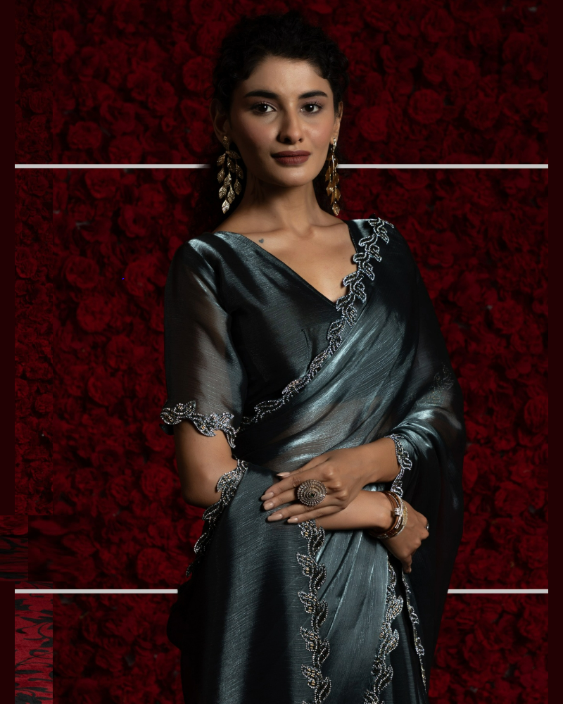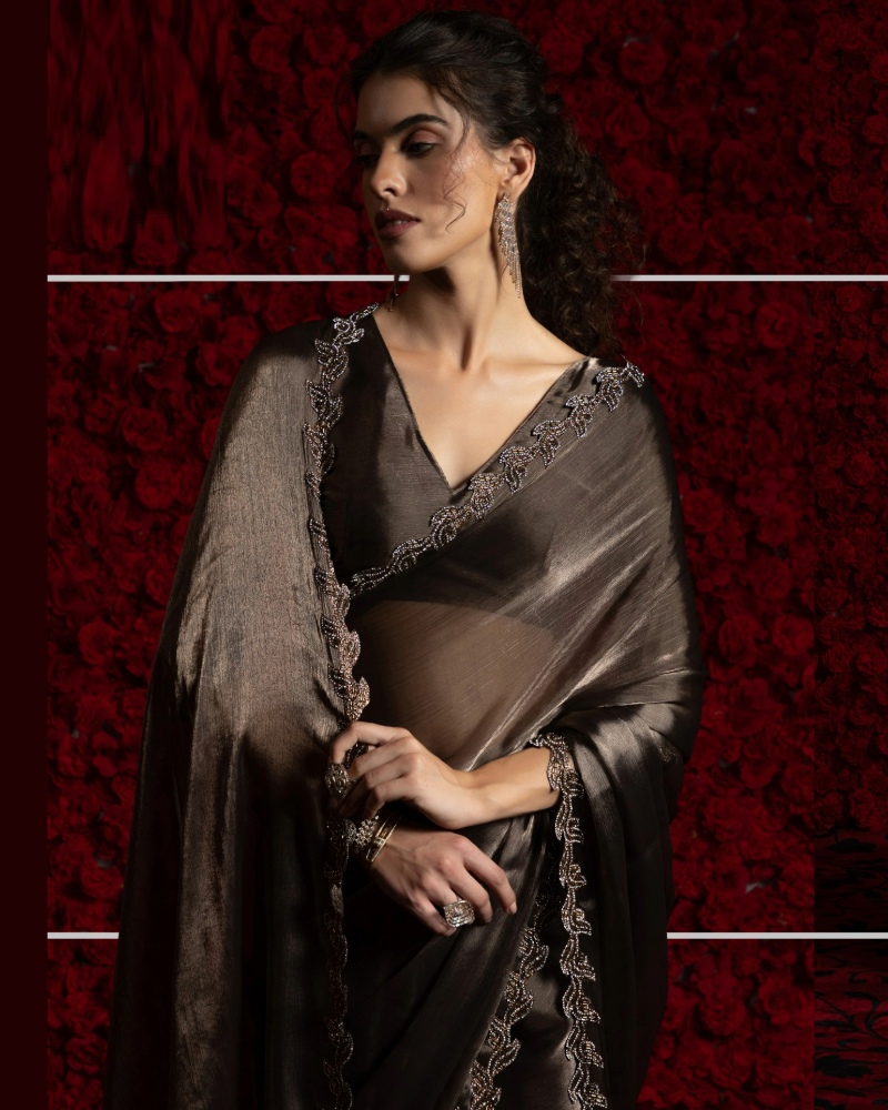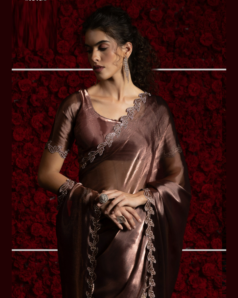 Indian Women Cocktail Party Style Tissue Chiffon Saree
