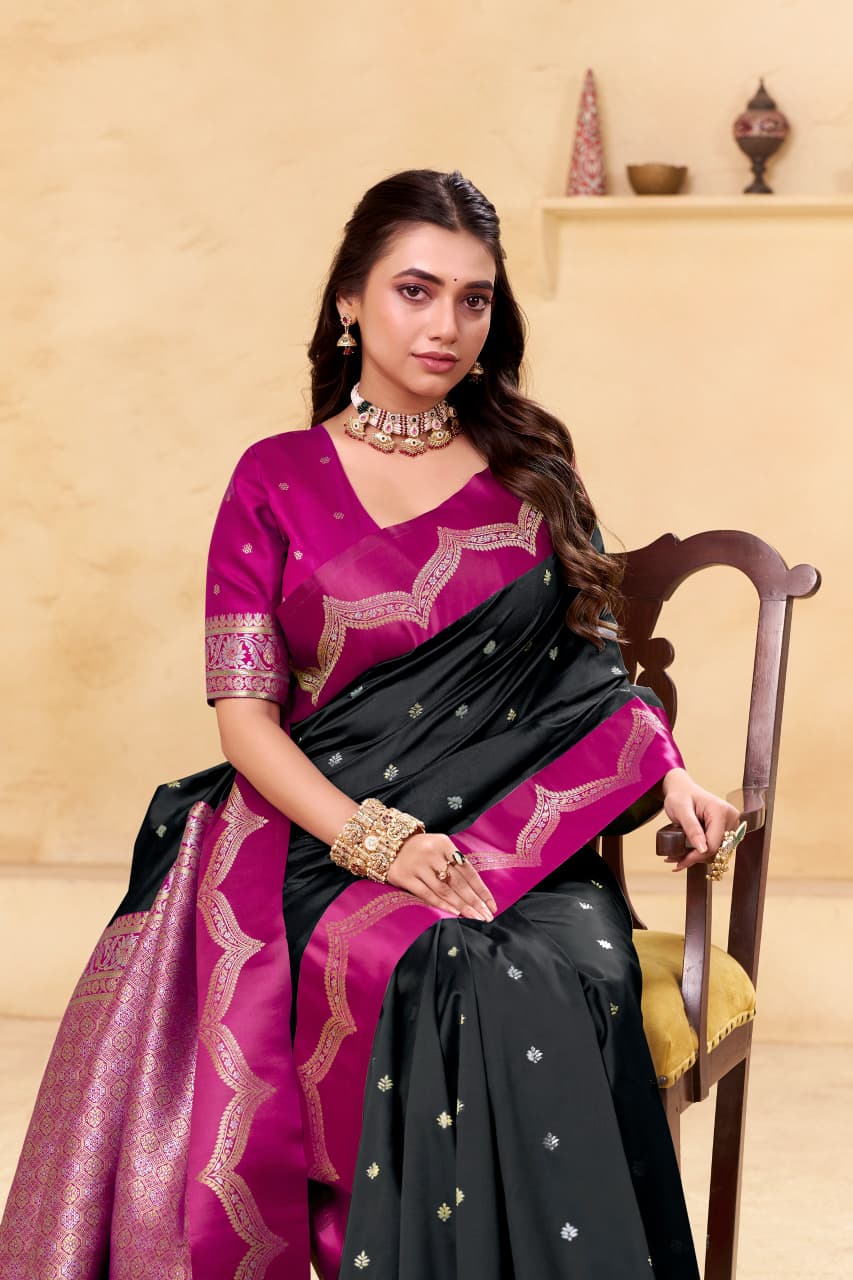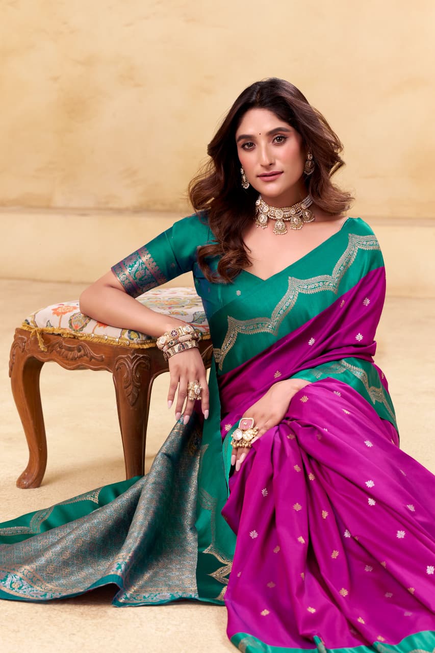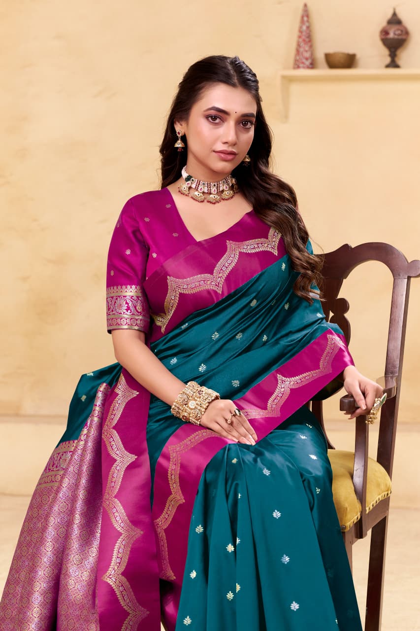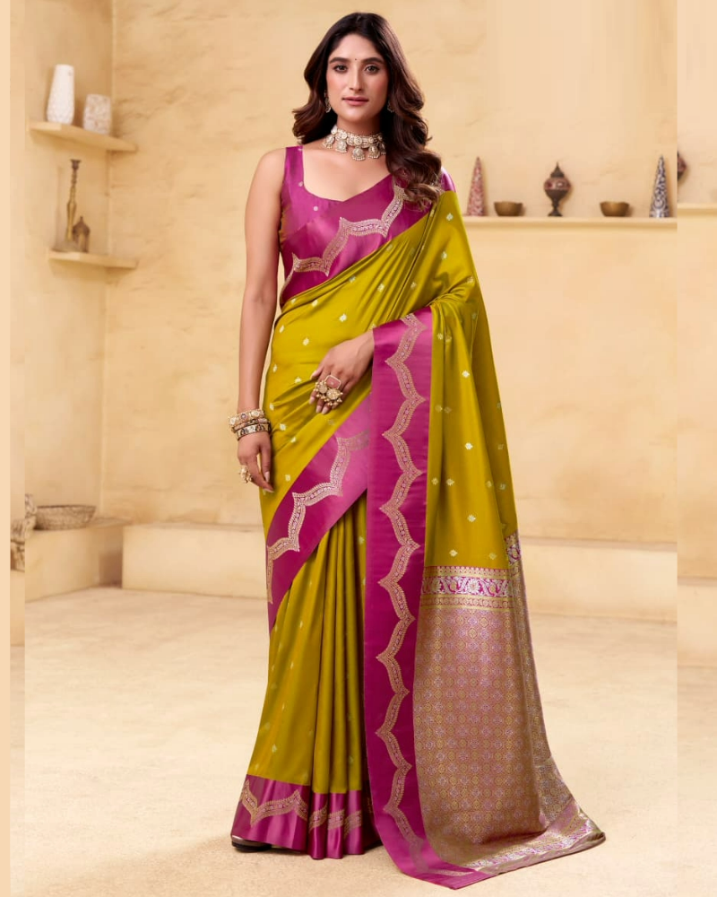 Indian Women Traditional Soft Satin Silk Saree with Blouse