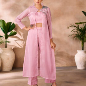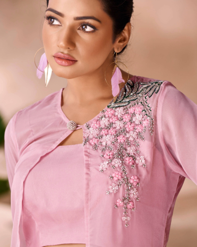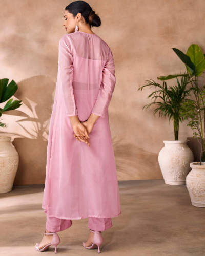 - Organza Fabric Handwork Stylish Partywear Co red Set