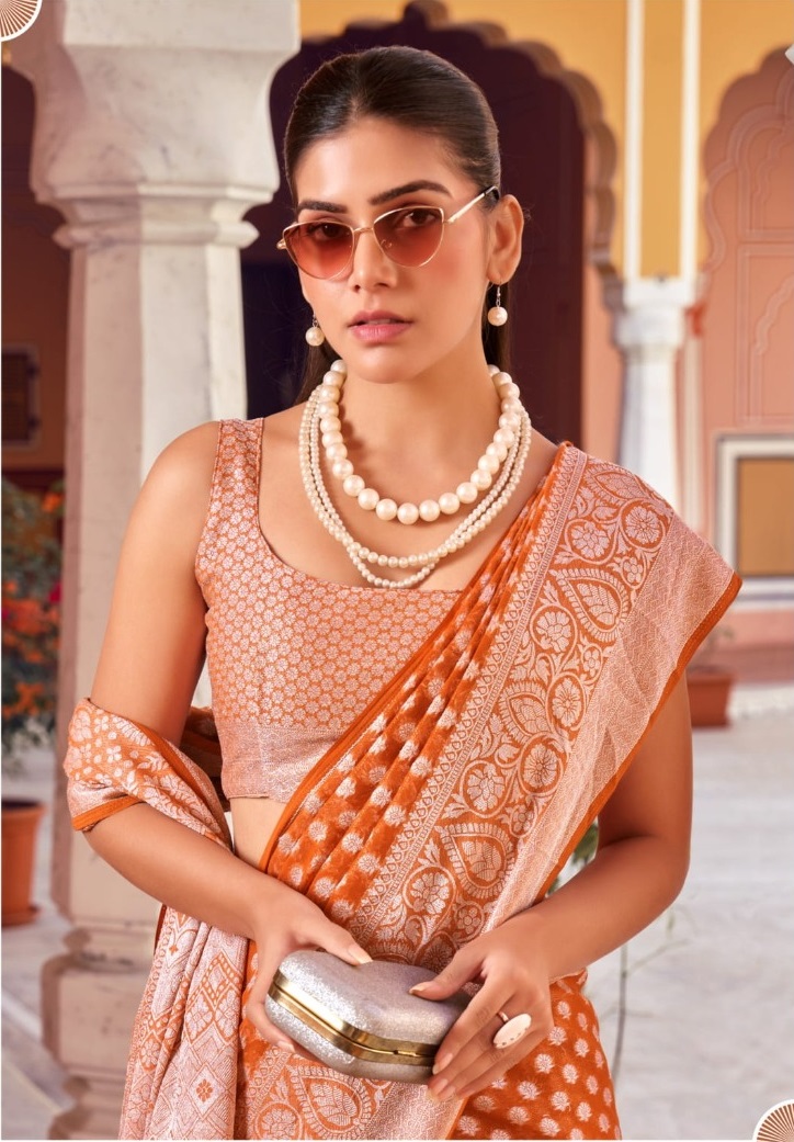 Discover elegance with our Organza Saree, featuring a stunning printed silk blouse. This exquisite saree is adorned with intricate zarkan sequin embellishments, adding a touch of glamour to your ensemble. Perfect for festive occasions and celebrations, this lightweight and breathable organza saree ensures both comfort and style.