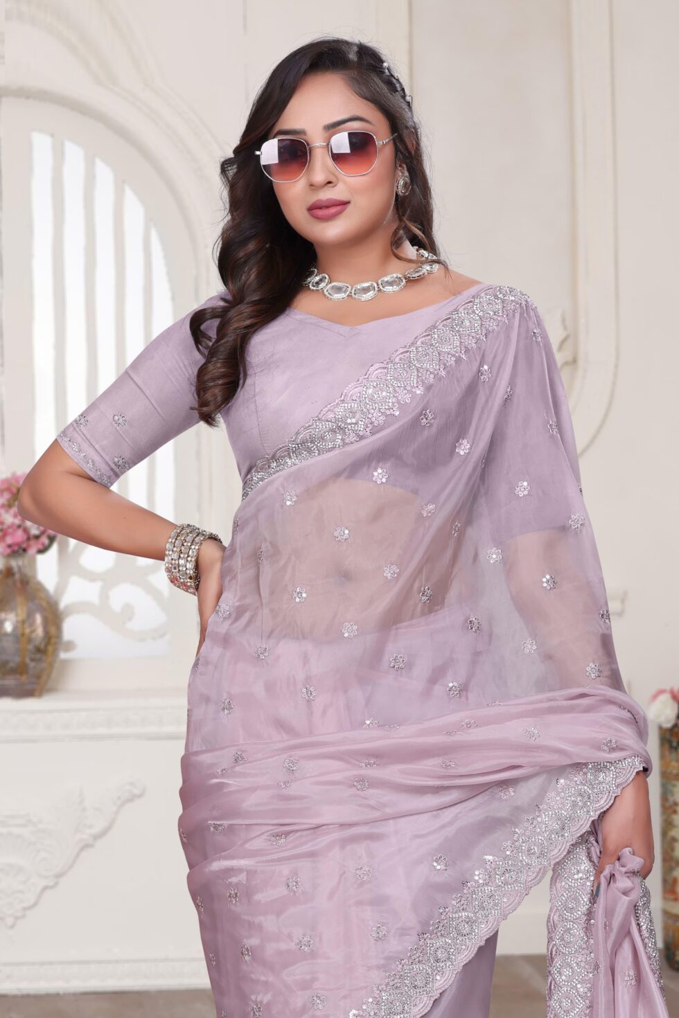 CRYSTAL SILK PARTY WEAR EMBROIDERY WORK DESIGNER SAREE