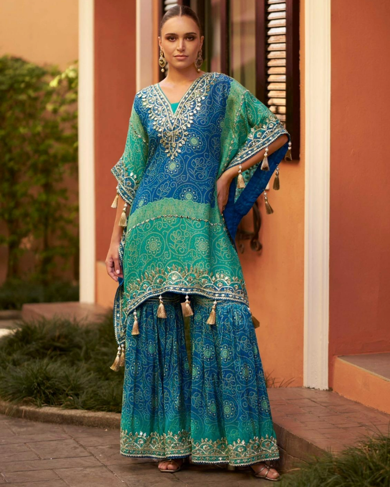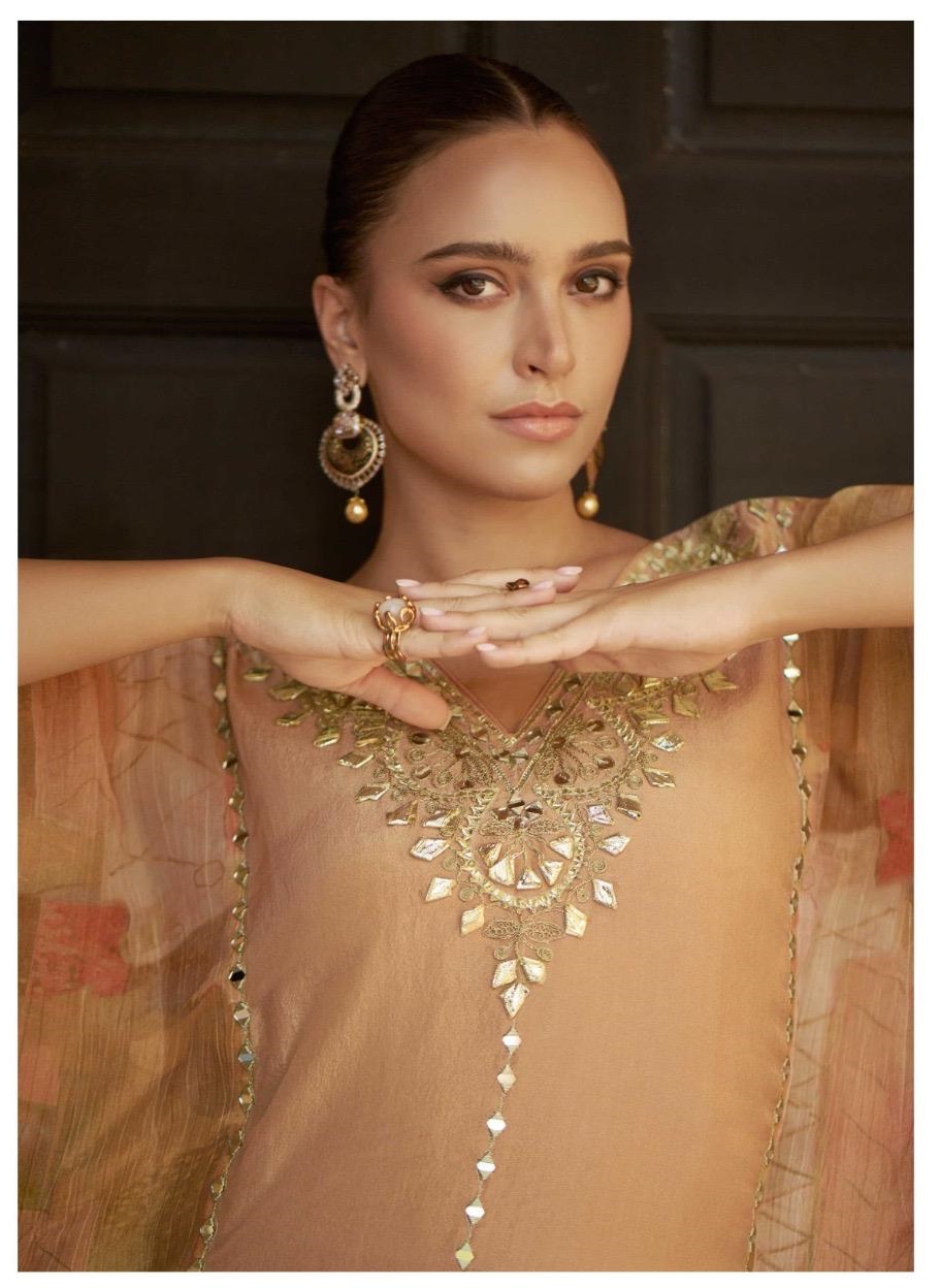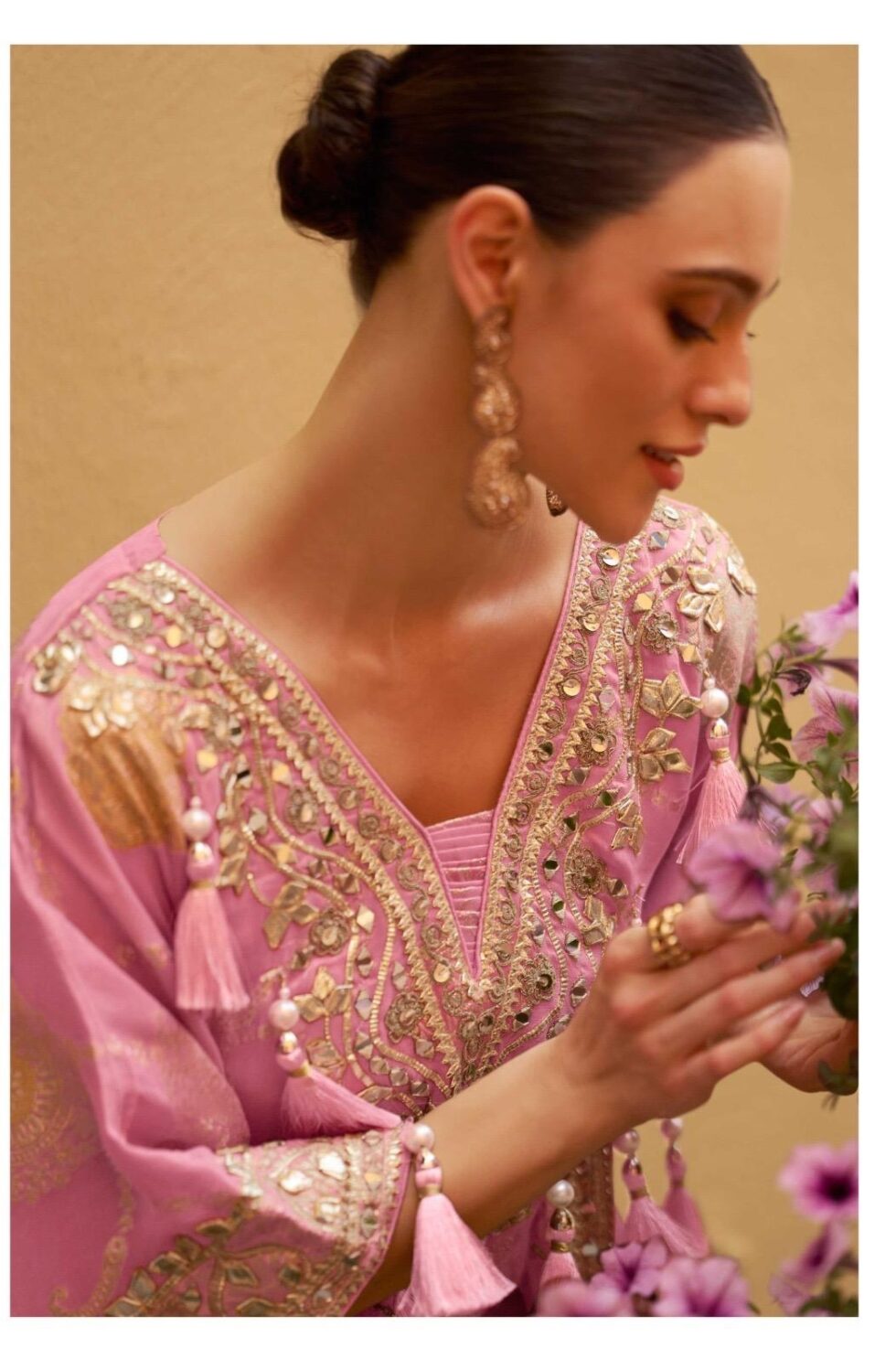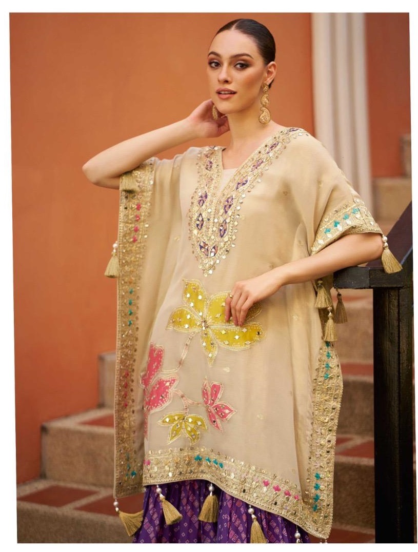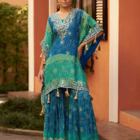 Latest Trendy Designer Real Premium Chinon Silk Kaftan with Sharara