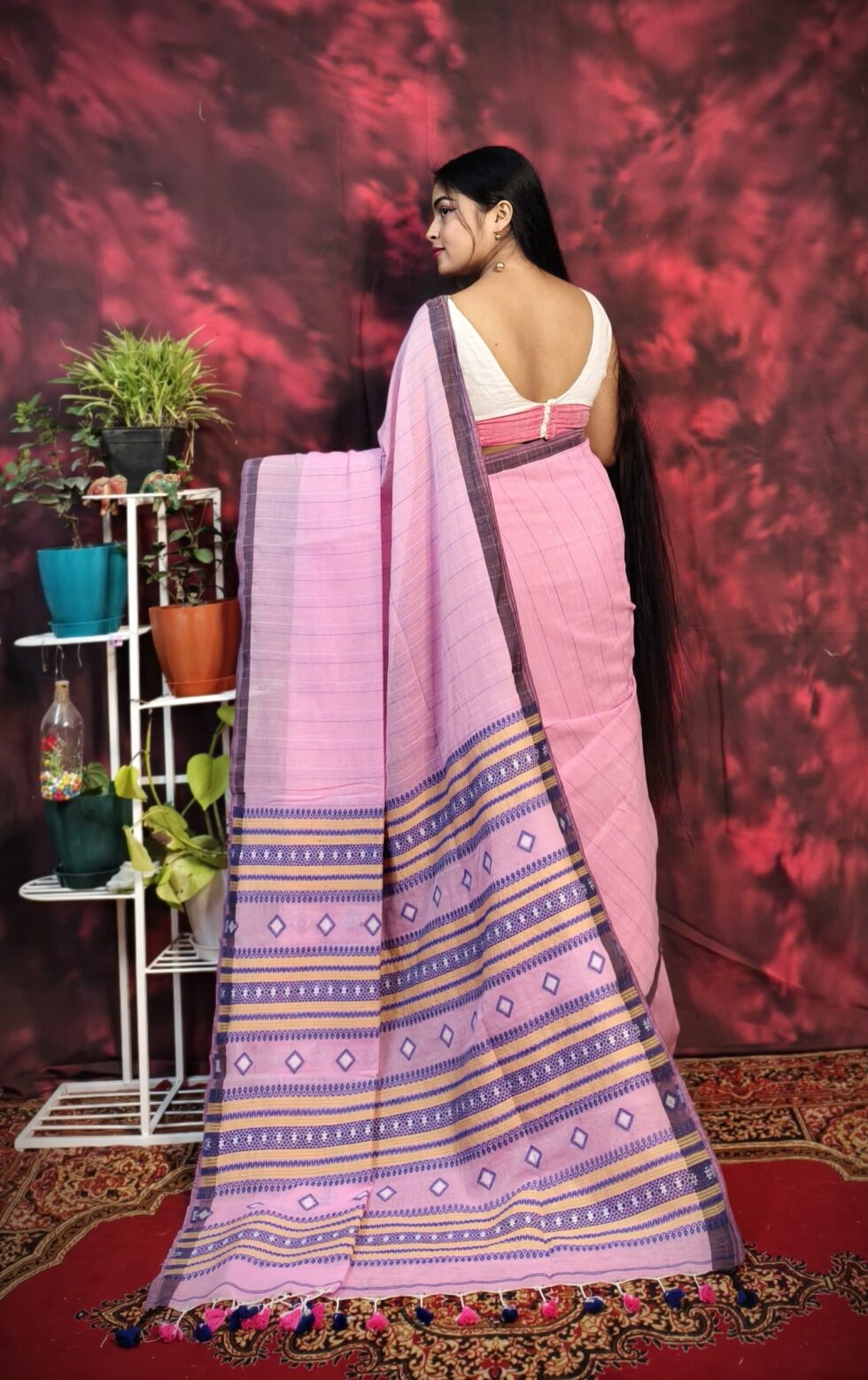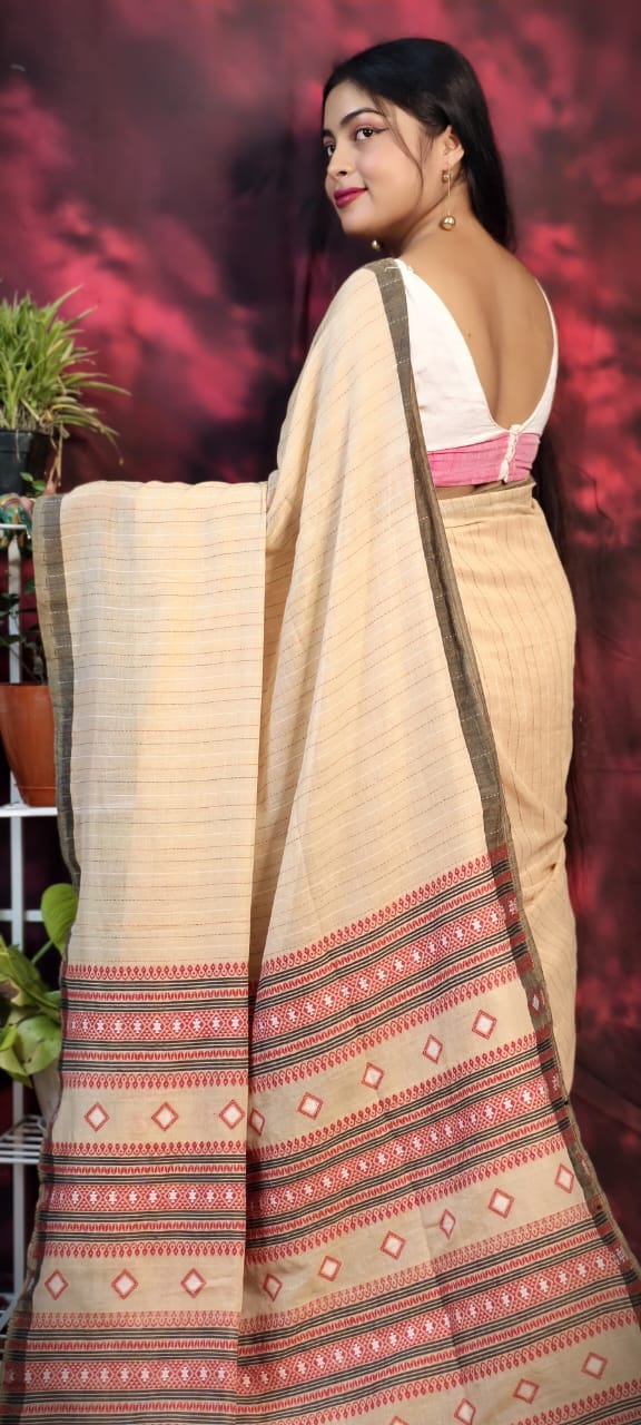 - STYLE: – Beautiful Authentic Soft Textured Cotton Jamdani Sarees for Women. Jamdani sarees are made of high-quality handwoven Cotton, which is very thin and soft, making the saree very light and airy. Jamdani sarees are characterized by eye-catching ornamental motifs woven onto the fabric.